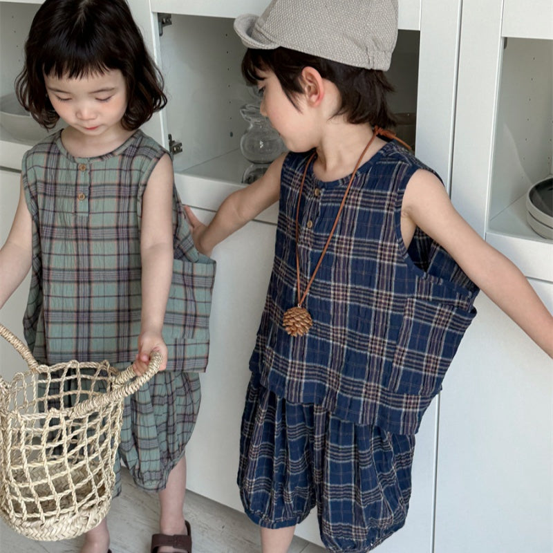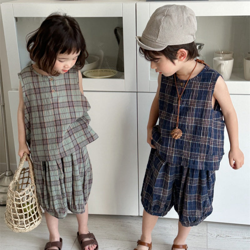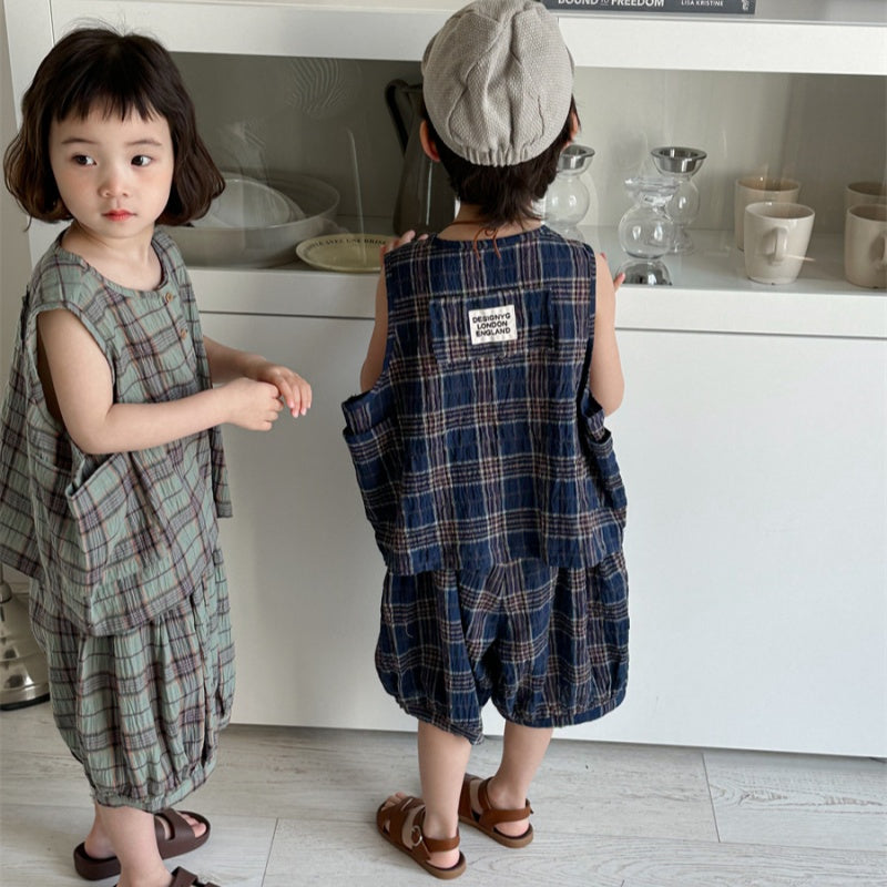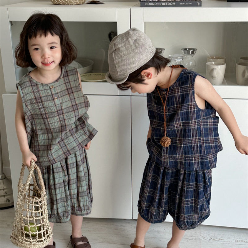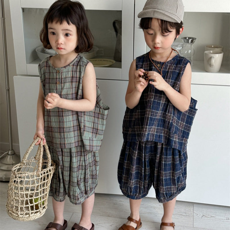【BABY&KID】夏新作 チェックコットンリネンセットアップSK080511