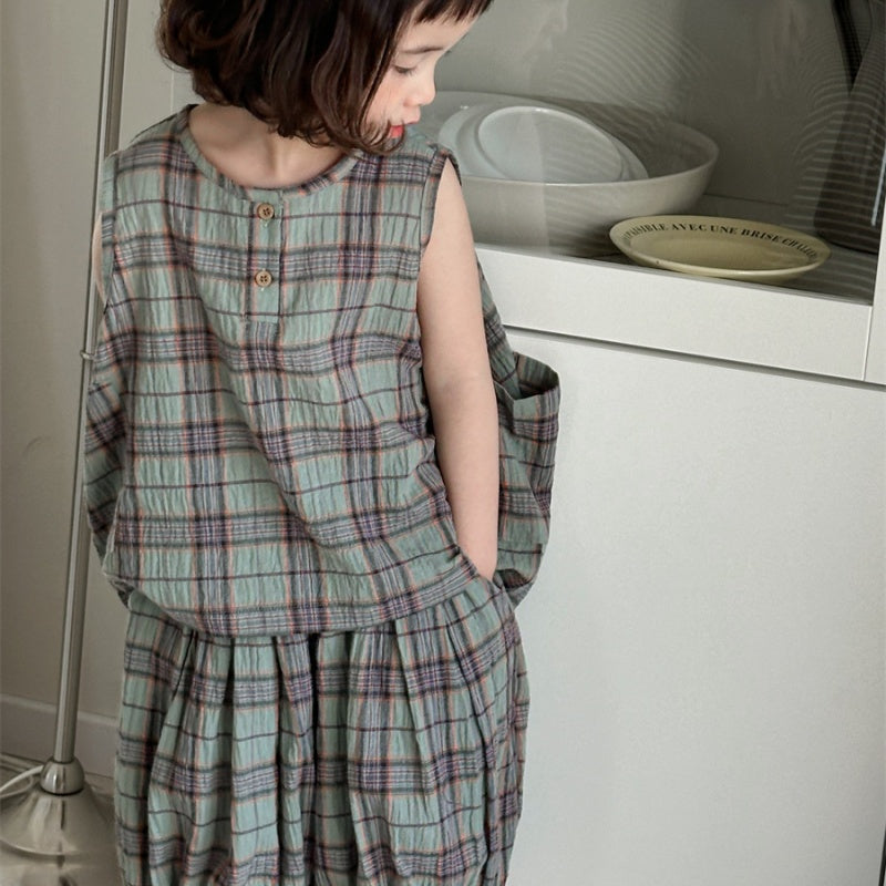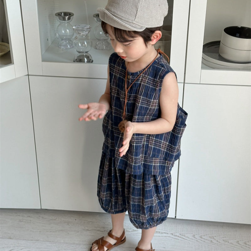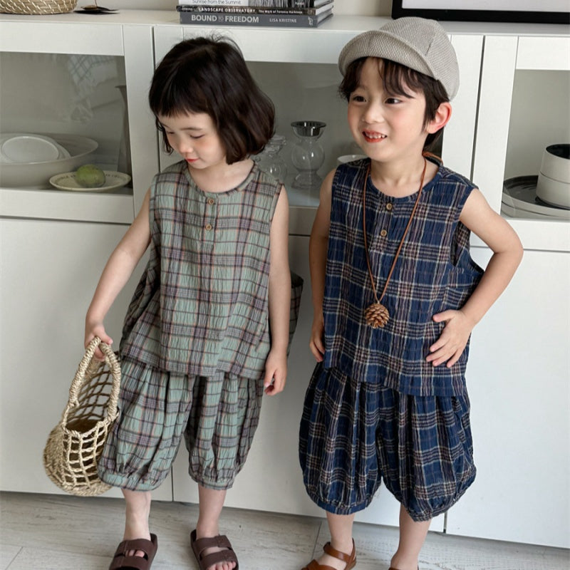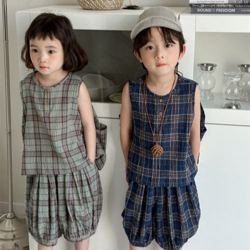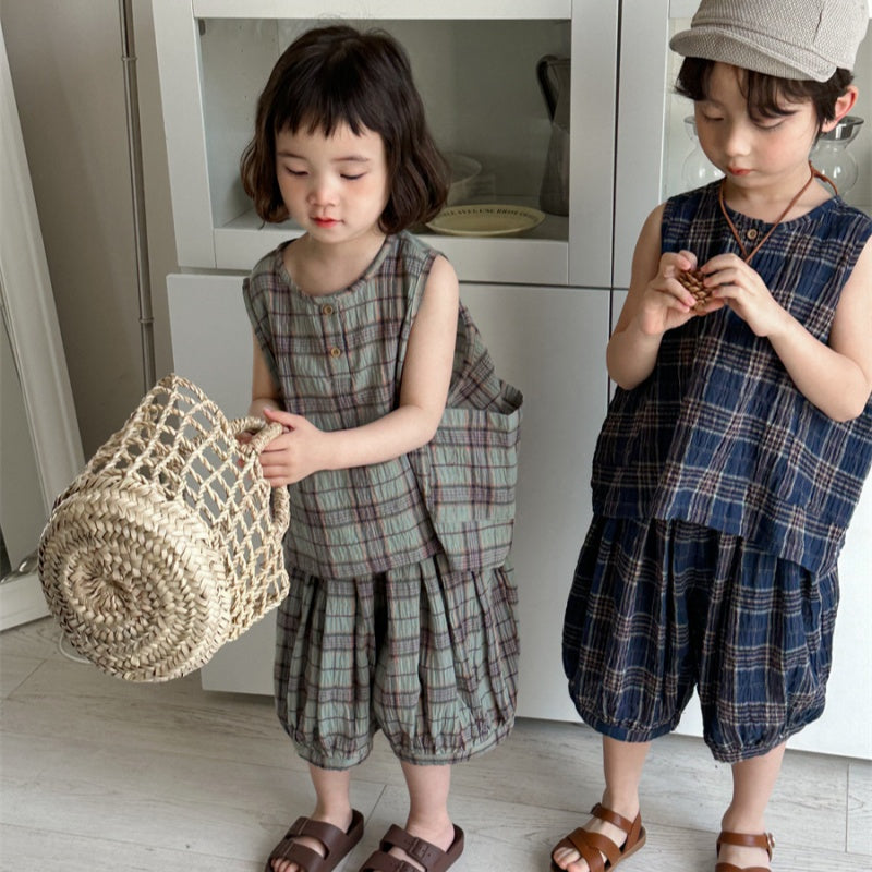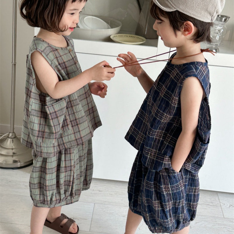 【BABY&KID】夏新作 チェックコットンリネンセットアップSK080511
