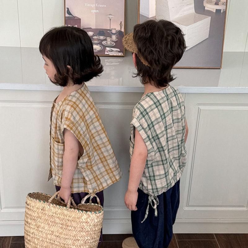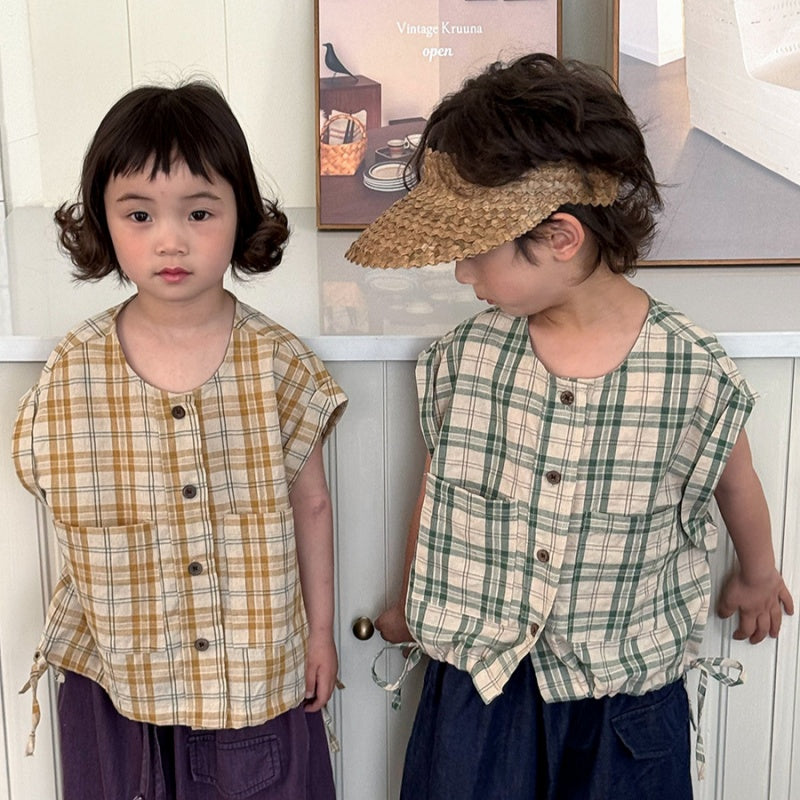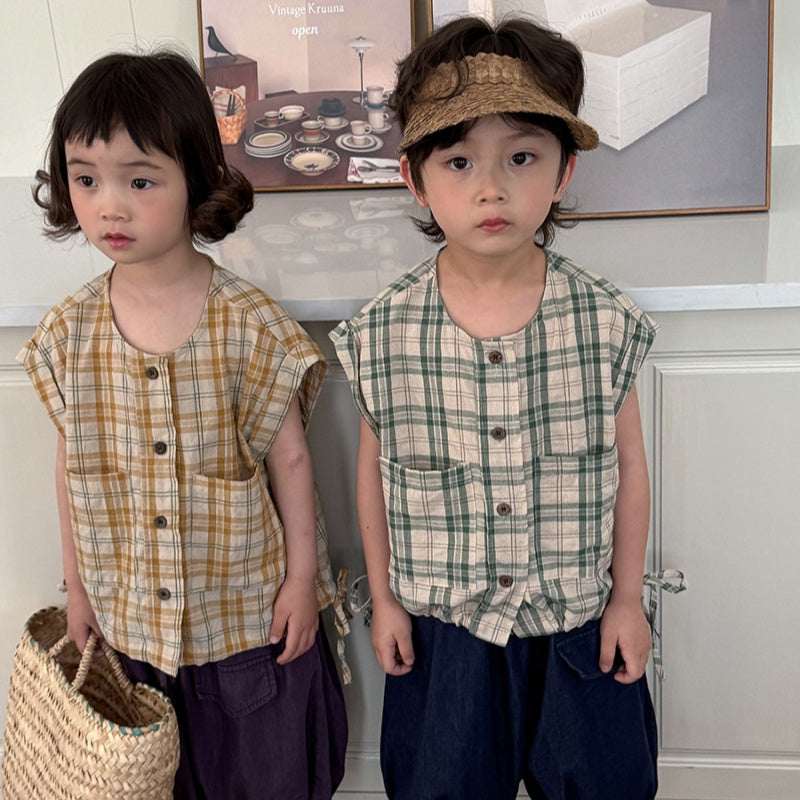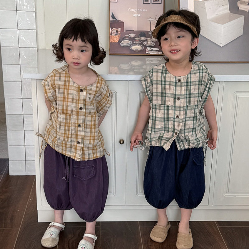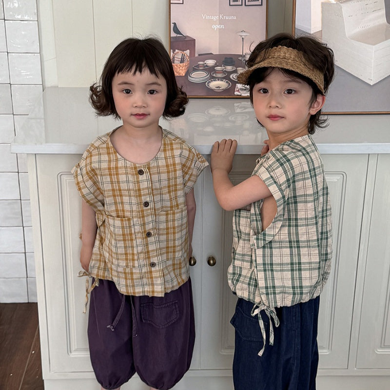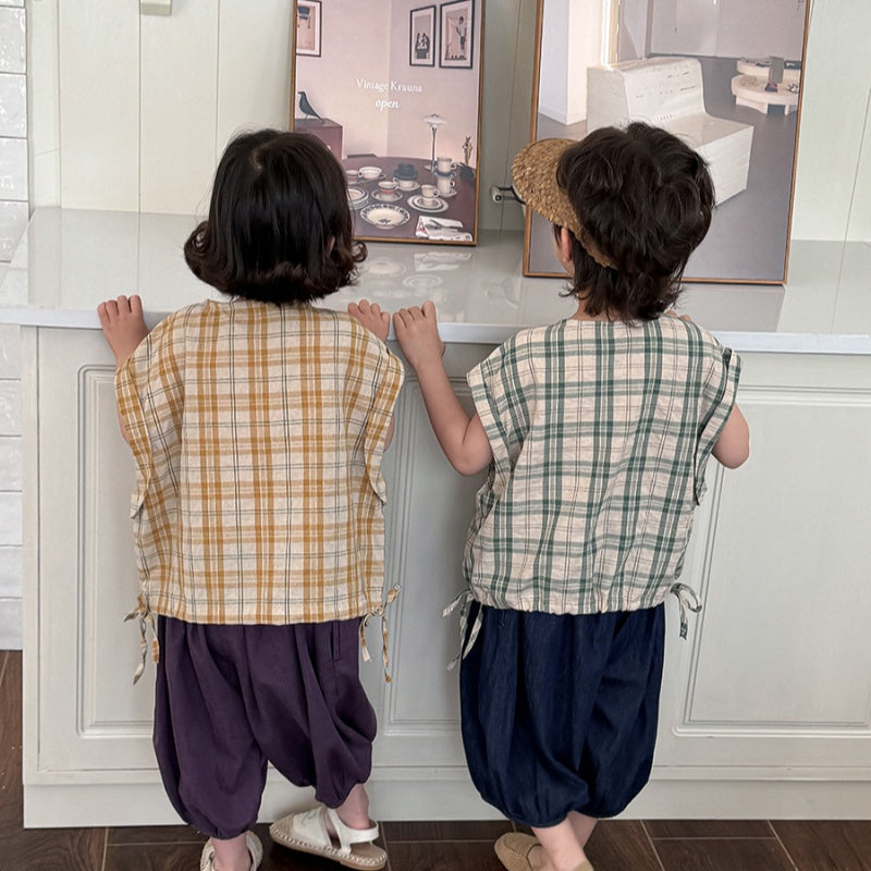 【BABY&KID】夏新作 チェック柄ノースリーブトップスSK080516
