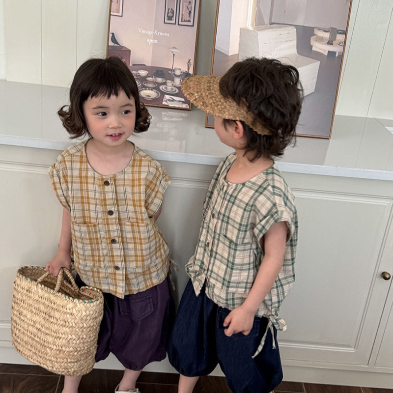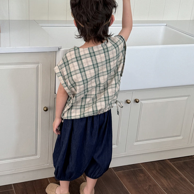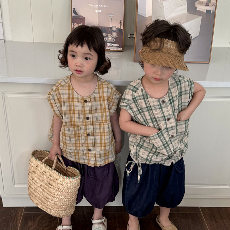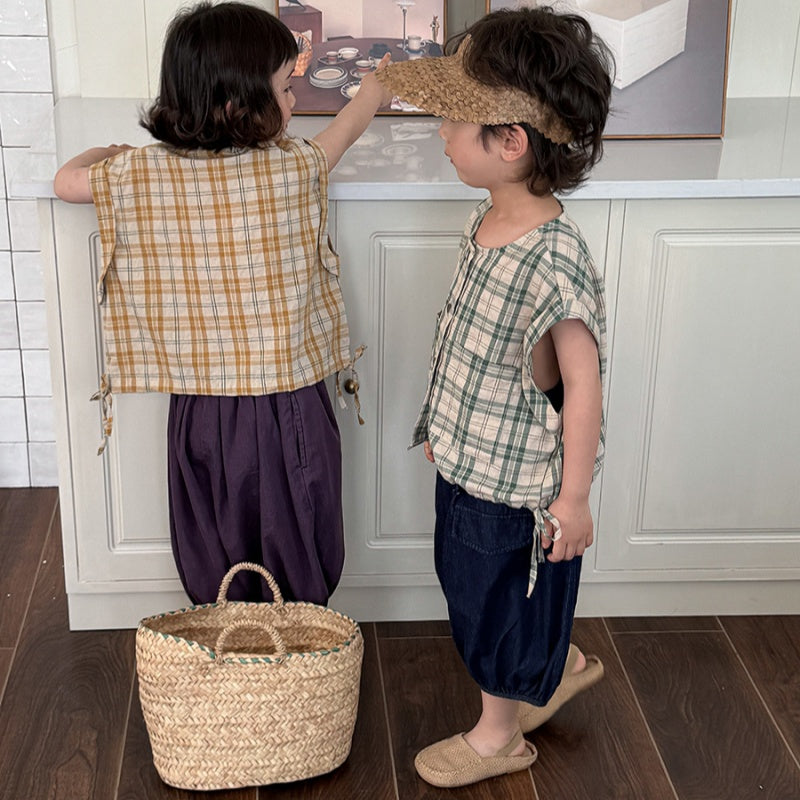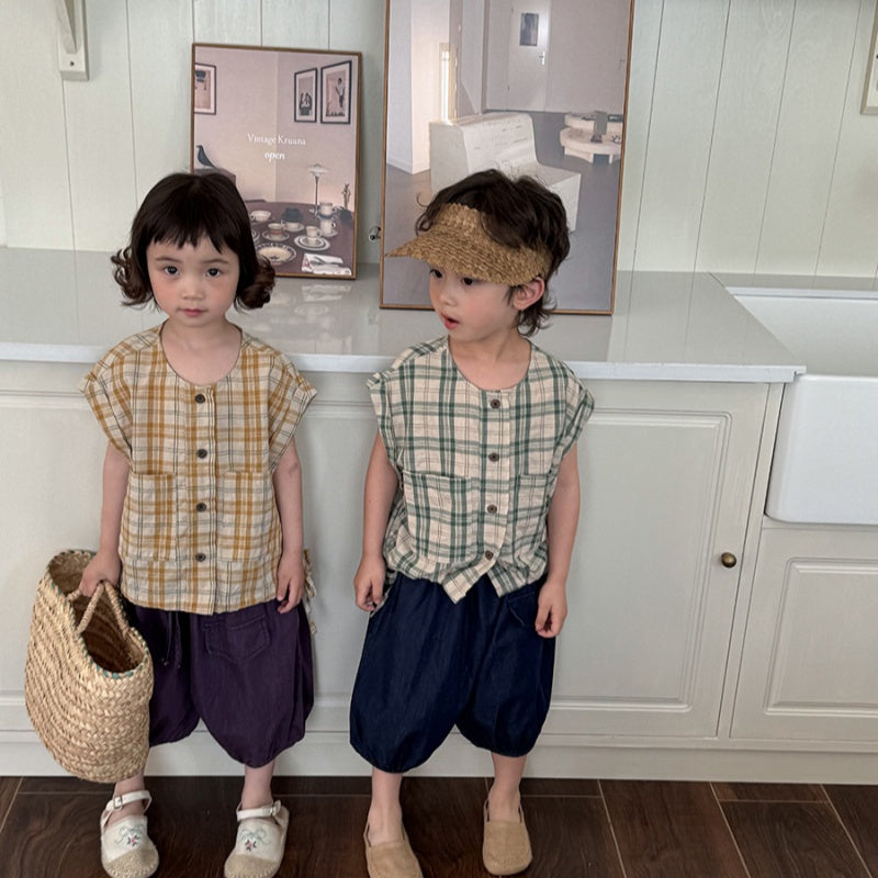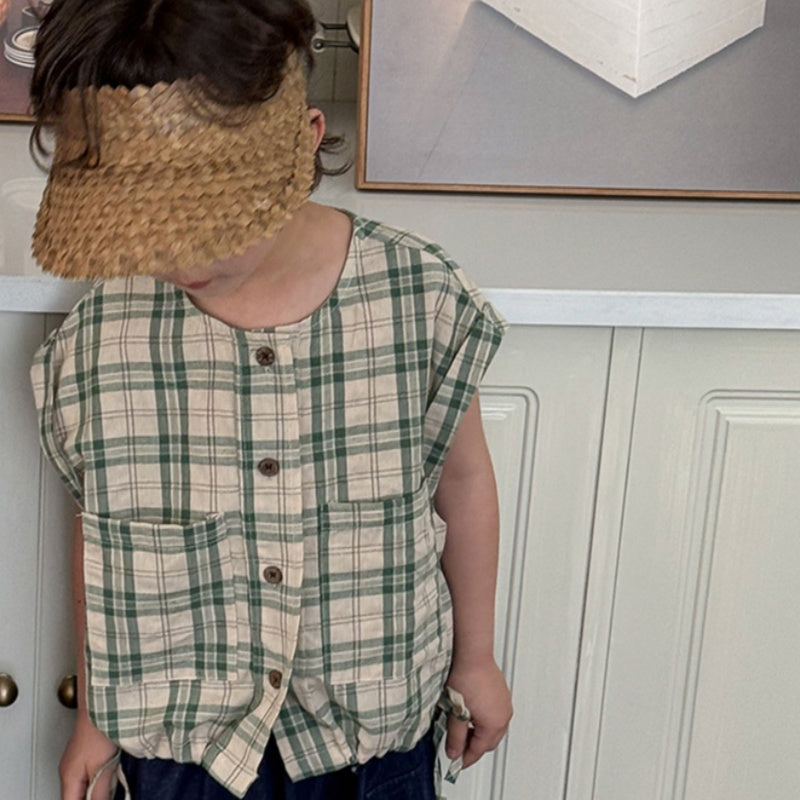 【BABY&KID】夏新作 チェック柄ノースリーブトップスSK080516