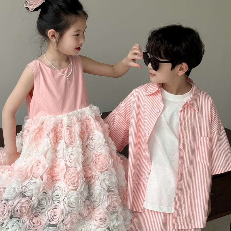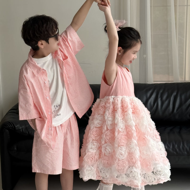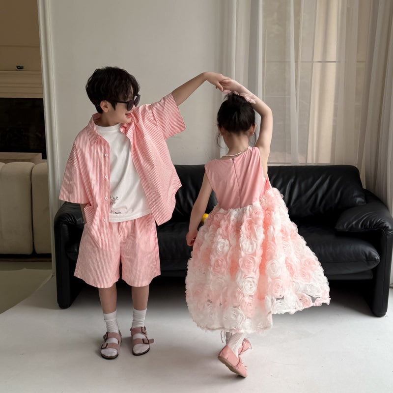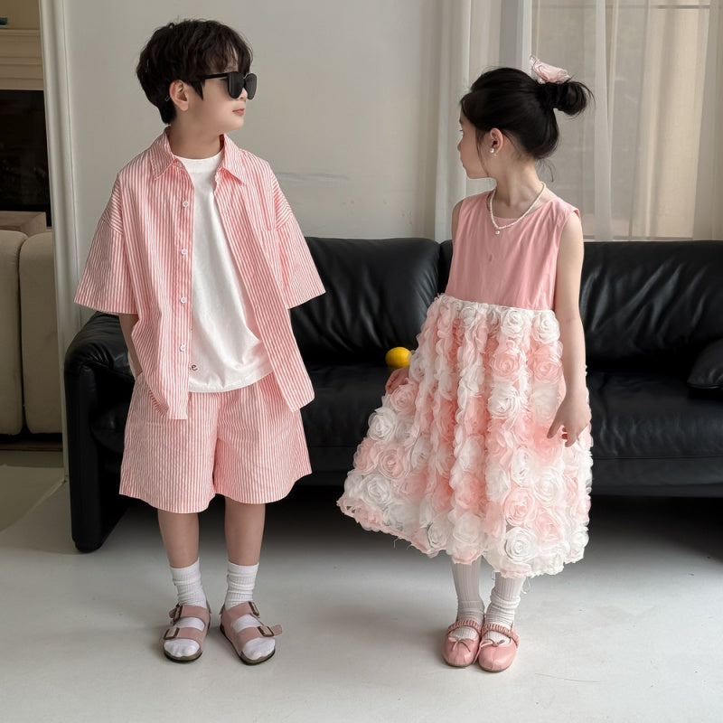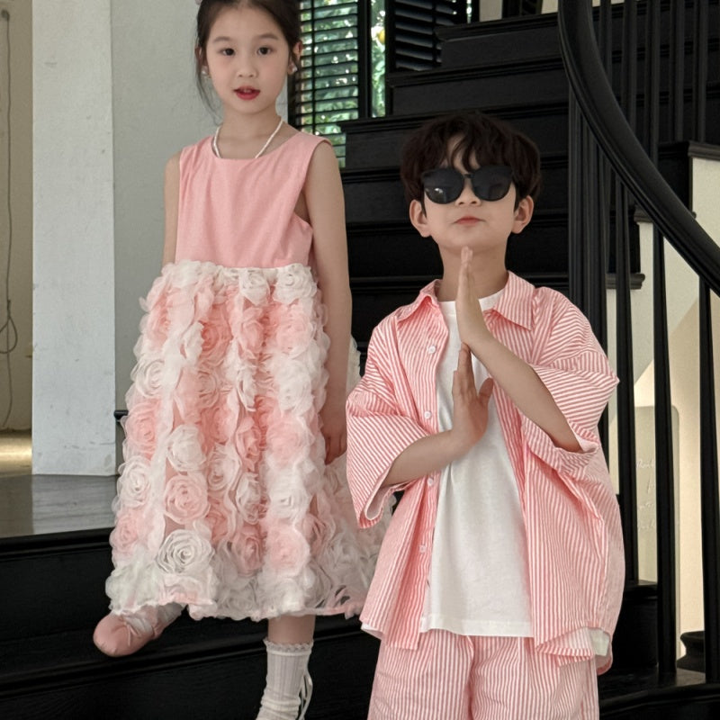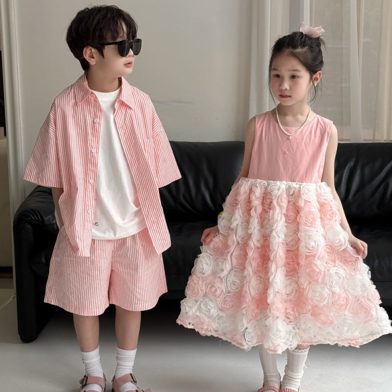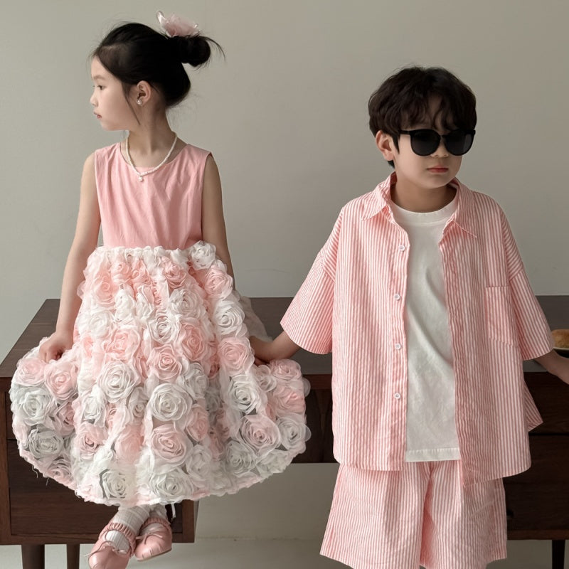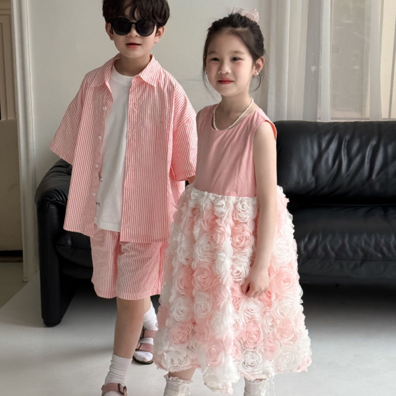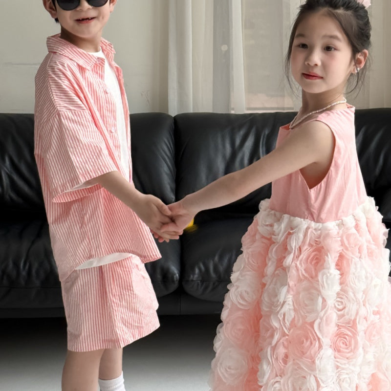 【BABY&KID】夏新作 ボーダーセットアップ、立体フラワーワンピースSK080520