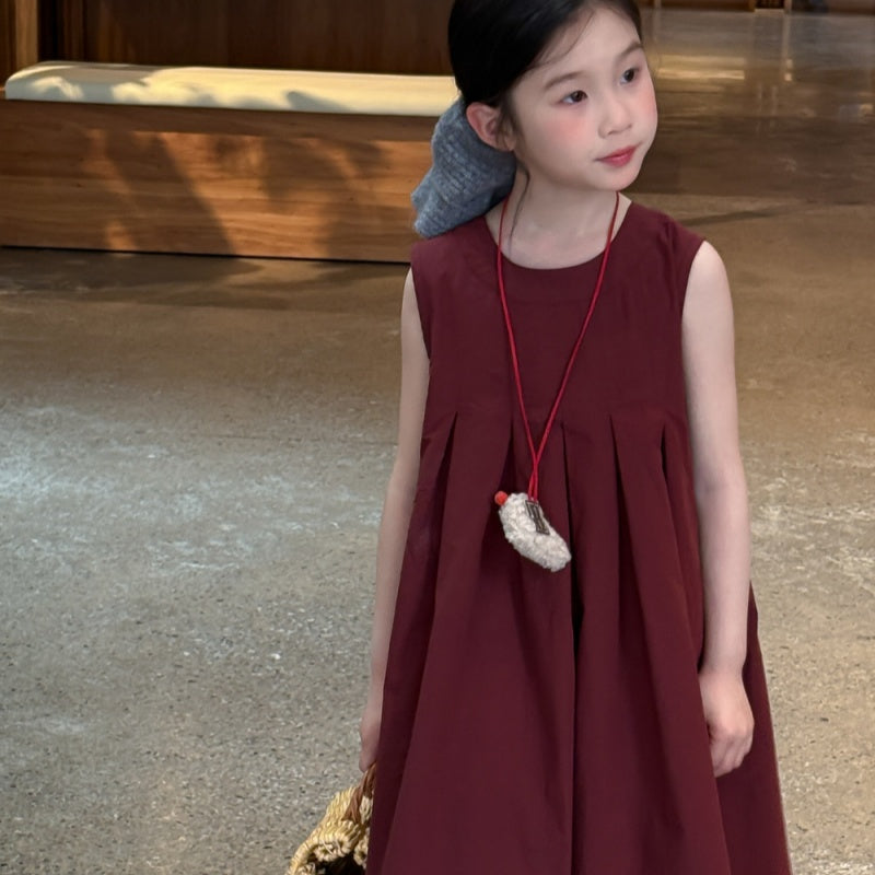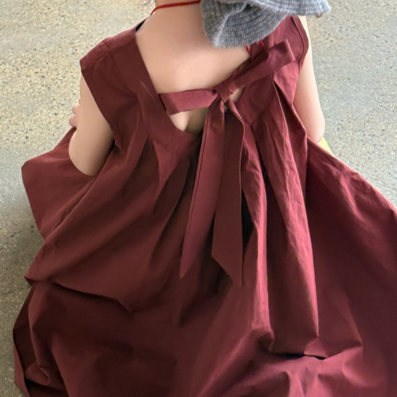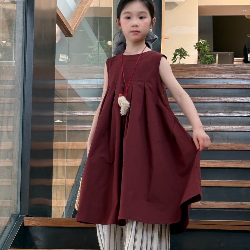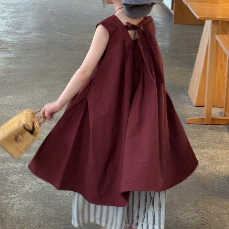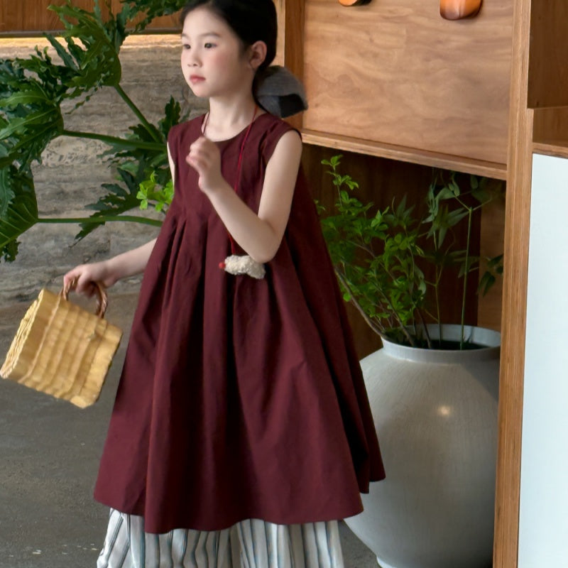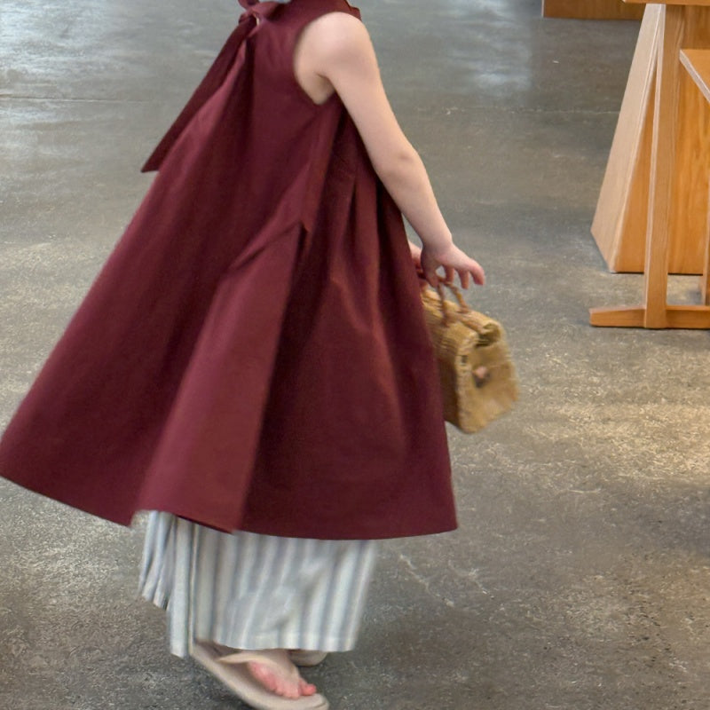 【BABY&KID】夏新作 無地リボンノースリーブワンピース、ボーダーパンツSK080518