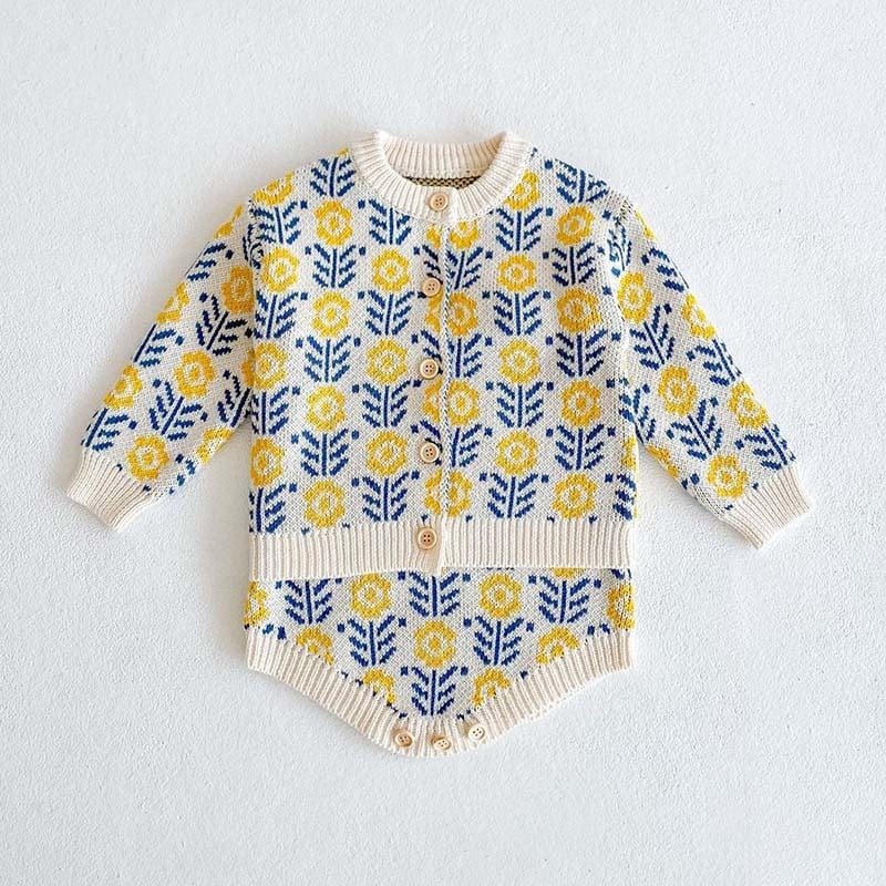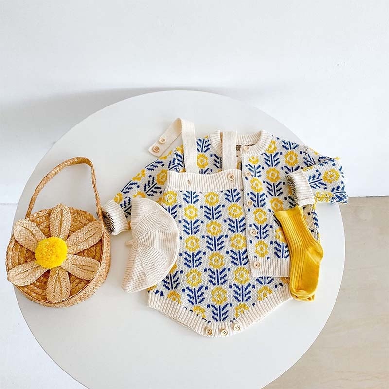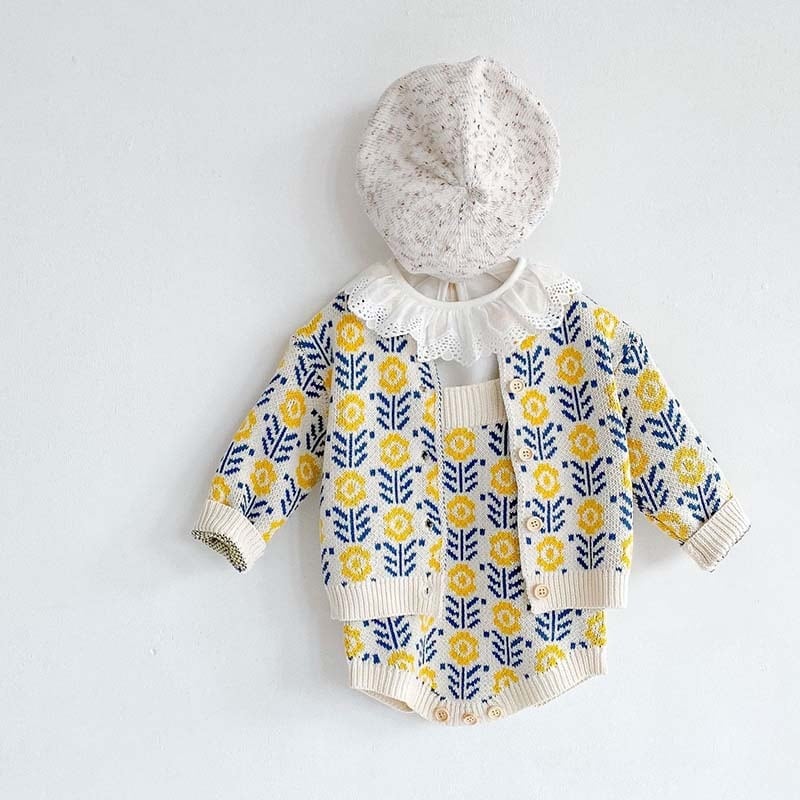 【BABY&KID】ひまわり柄ニットカーディガンORロンパースSK11324