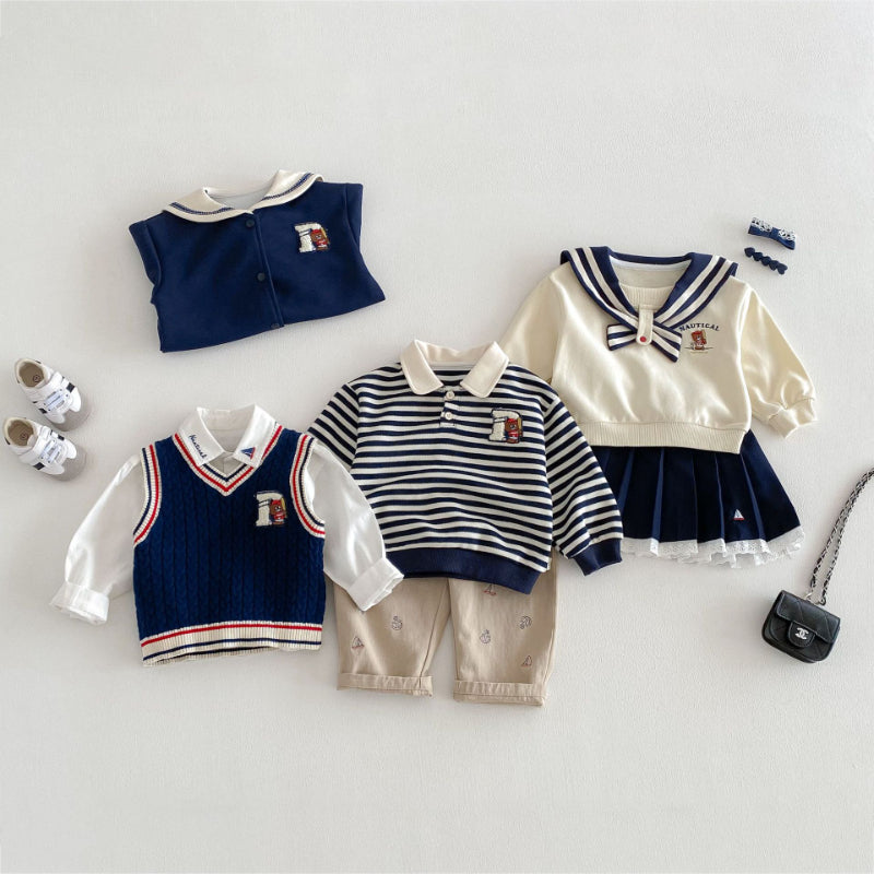 【BABY&KID】くま刺繍ボーダーポロシャツ、マリンカラーアウター、ニットベストSK103717