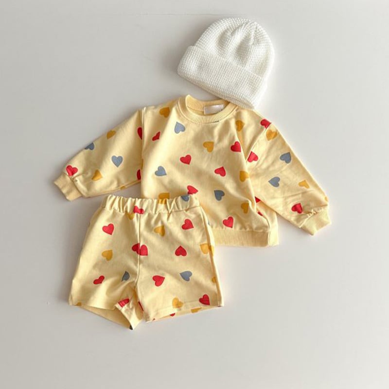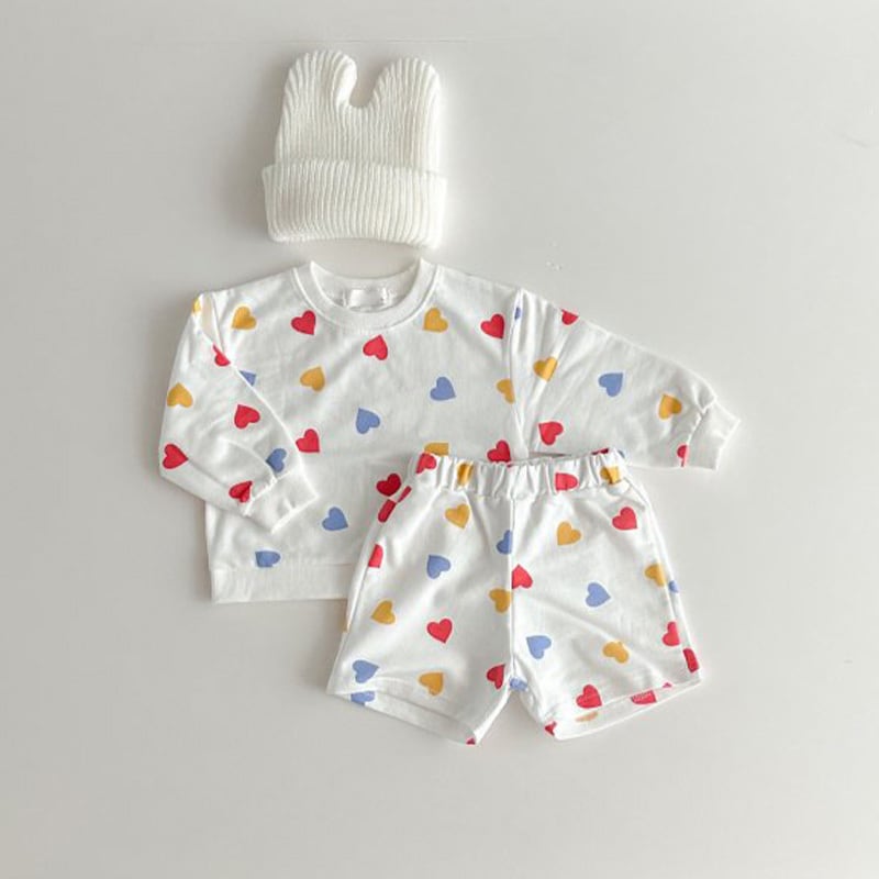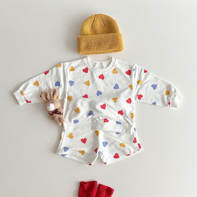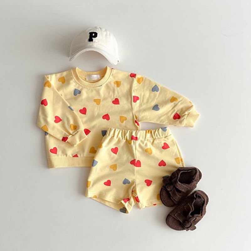 【BABY&KIDS】INS風カジュアルハート柄長袖シャツ&短パンツSK060109